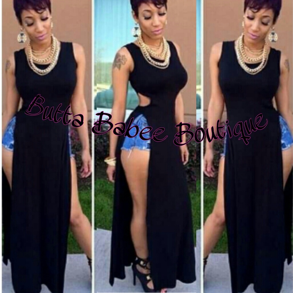 Floor length high low blouse with open sides comes in sizes small-large and has good stretch to the material! This head turning sexy top can be worn over shorts, skirts, etc...