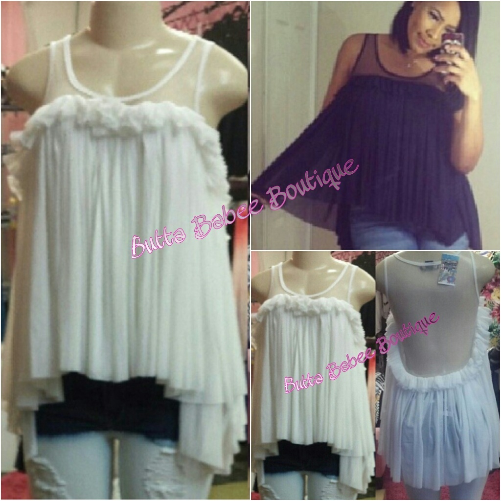 Beautiful tank blouse designed with a sheer back looks absolutely stunning having the hi-low draping.